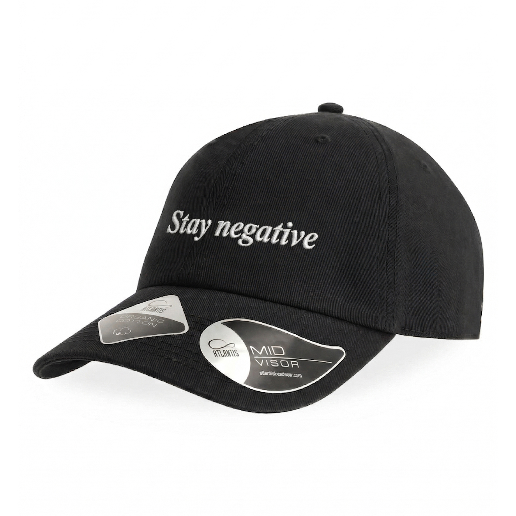 Un messaggio provocatorio con un design essenziale. Il cappellino “Stay Negative” abbina uno stile pulito a un tocco di ironia, grazie alla visiera leggermente curva e alla chiusura regolabile che lo rendono comodo e versatile.