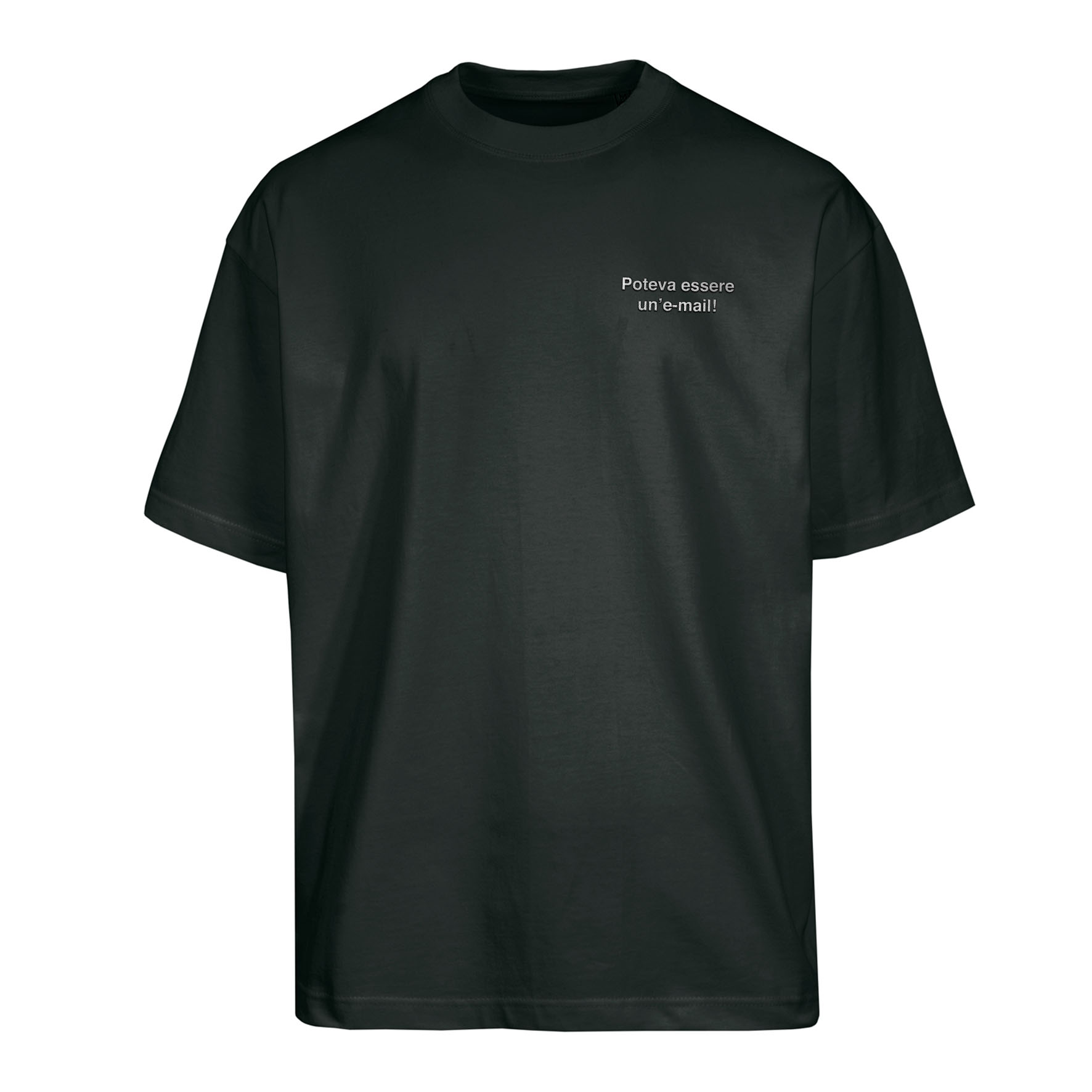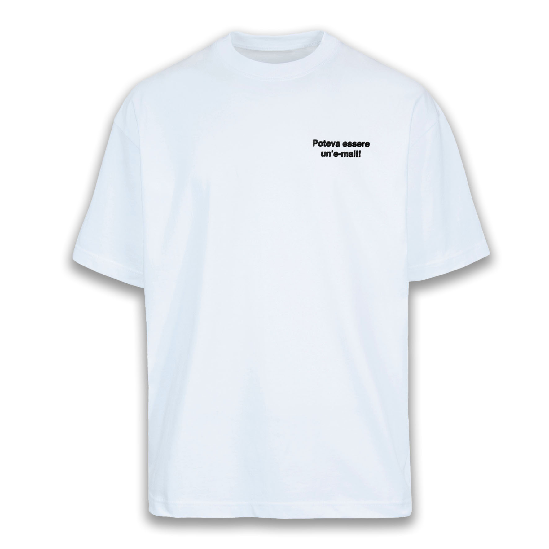 100% cotone ring-spun, 180 gr/mq. Maglia Over girocollo manica corta. Vestibilità Over con giro manica sceso. Made in Italy.